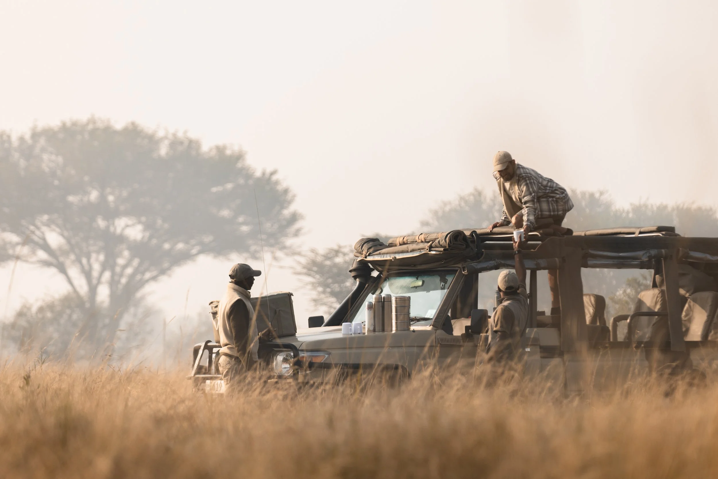 Group size will be max 6 people for a more intimate experience and flexibility for space in the vehicles. Our schedule is flexible to make the most of each day on safari. Most mornings we head out early with a packed breakfast so we can spend extended time out in the bush without needing to return to camp. When wildlife activity is especially good, we often choose to enjoy lunch out in the field to maximize viewing opportunities. Each evening drive we also bring along our own sundowner drinks, giving us the freedom to pause and enjoy the landscape wherever the day’s adventure takes us.